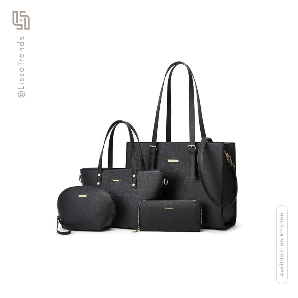 This black Lovematch 4-piece handbag set brings refined practicality to your accessory wardrobe. Designed for the woman who values both style and functionality, the coordinated collection transitions from office presentations to weekend getaways without sacrificing polish or organization — proving that true elegance lies in pieces that work seamlessly together.