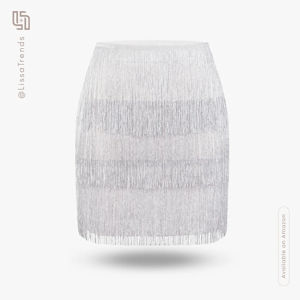 Unleash your party energy with this Fringe Tassel Mini Skirt in eye-catching Sparkly White. Featuring layered fringe trim, high-waist bodycon fit, and stretchy fabric that moves with you. Perfect for nights out, music festivals, or when statement-making style meets dance-floor confidence.