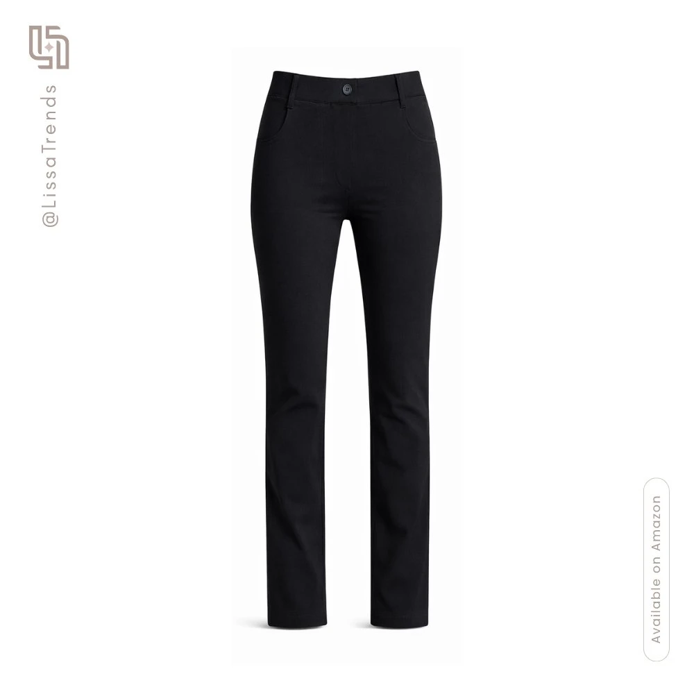 These black straight leg dress pants bring refined versatility to your capsule wardrobe. Designed for the woman who values both performance and polish, they transition from morning meetings to evening commitments without losing their sleek silhouette.