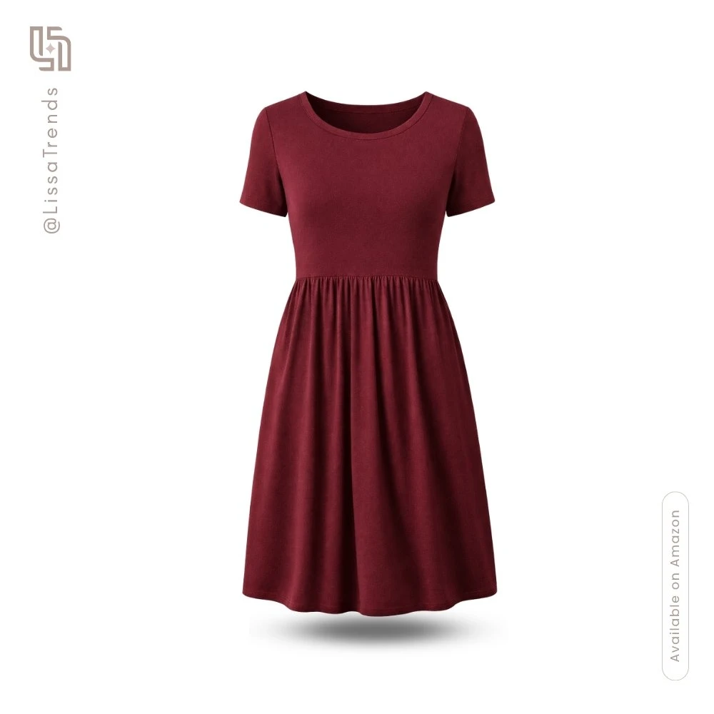 Embrace effortless comfort with this Empire Waist Casual Dress in rich Wine Red. Featuring short sleeves, functional pockets, and soft flowy rayon fabric. Perfect for relaxed days, travel, or when cozy elegance meets versatile everyday style.