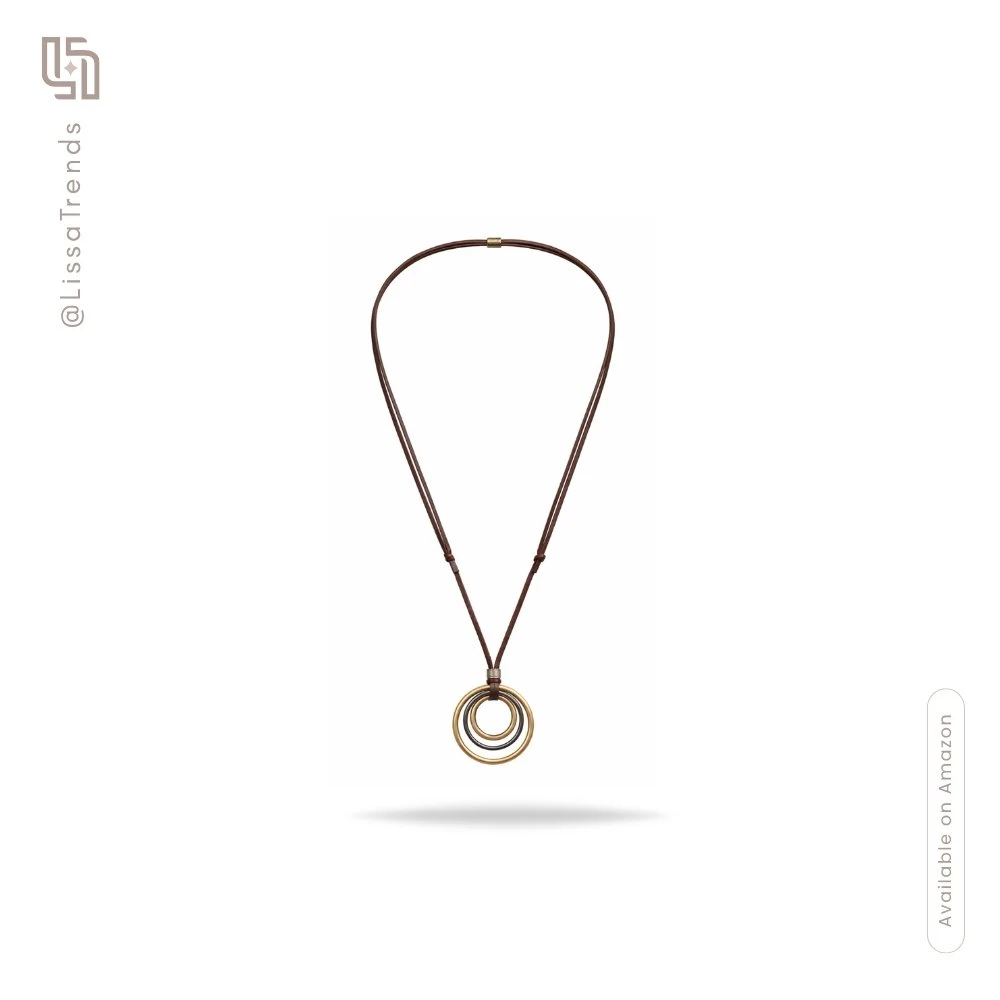 Embrace rustic versatility with this Adjustable Leather Rope Necklace in warm Brown. Featuring a wooden circle pendant, extra-long adjustable length, and vintage boho charm. Perfect for layering, casual styling, or when artisanal simplicity meets effortless everyday wear.