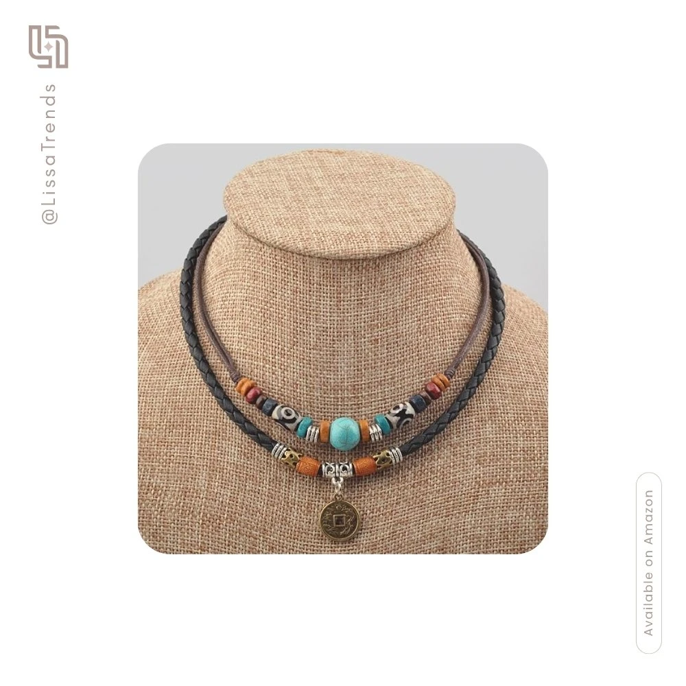 This braided leather choker brings earthy authenticity to your bohemian wardrobe. Designed for the woman who values craftsmanship and individuality, the double-layer cord, turquoise bead, and vintage coin pendant create a statement piece that transitions from festival weekends to casual everyday wear without sacrificing personality or intentionality.