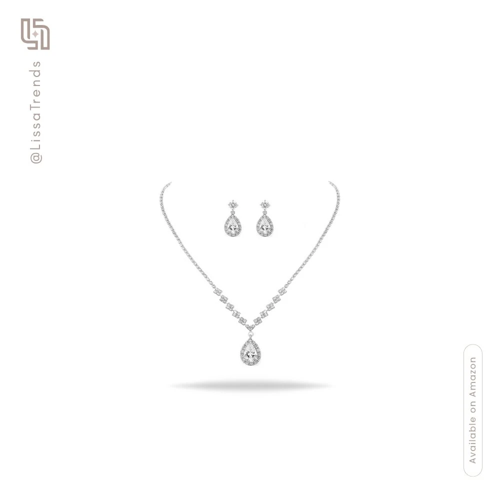 Embrace timeless bridal elegance with this Crystal Bridal Jewelry Set in luminous Silver. Featuring sparkling rhinestone choker, matching drop earrings, and classic design. Perfect for weddings, proms, or when refined sparkle meets romantic sophistication.