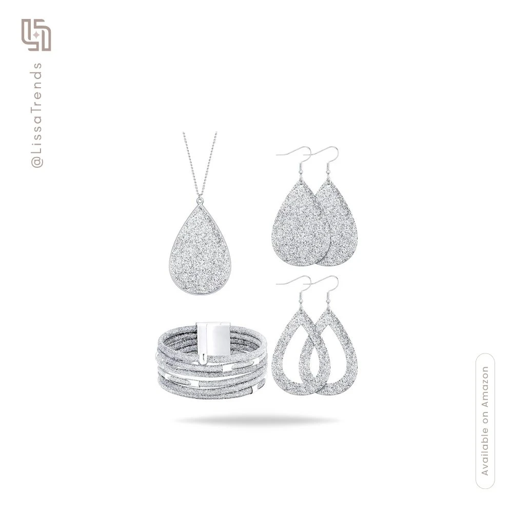 This silver glitter jewelry set brings fun, festive energy to your special occasion wardrobe. Designed for the woman who values both impact and comfort, the sequin-embellished pieces and lightweight construction create a coordinated look that shines from bridal showers to birthday celebrations without weighing you down.
