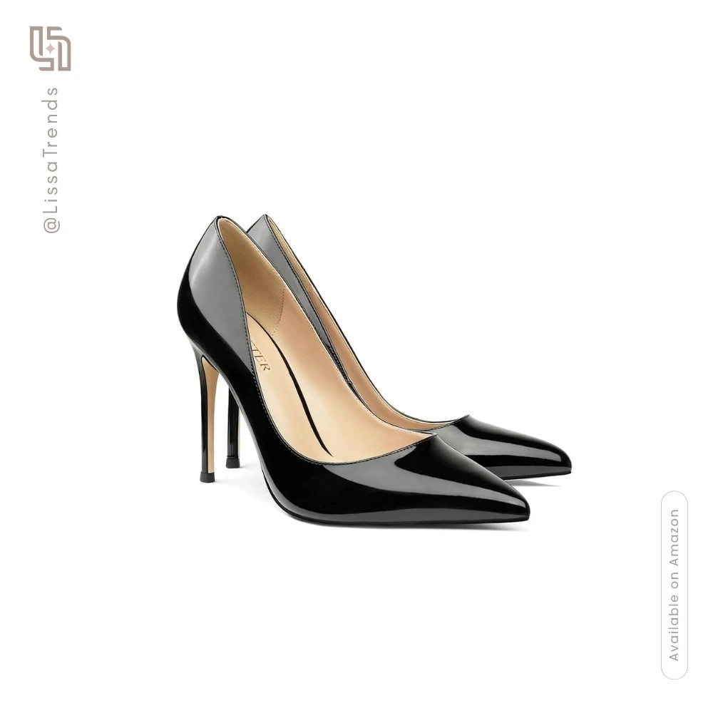 Elevate your evening essentials with these Pointed Toe Stiletto Pumps in classic Black. Featuring a sleek 4-inch heel, patent leather finish, and slip-on design. Perfect for weddings, parties, or when timeless elegance meets confident stride.