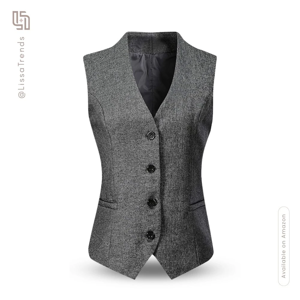 Add structured polish to any outfit with this Tailored Suit Vest in versatile Gray. Fully lined with a classic V-neckline and four-button closure, it layers effortlessly over blouses or stands alone with high-waisted trousers. A neutral piece for building intentional looks.